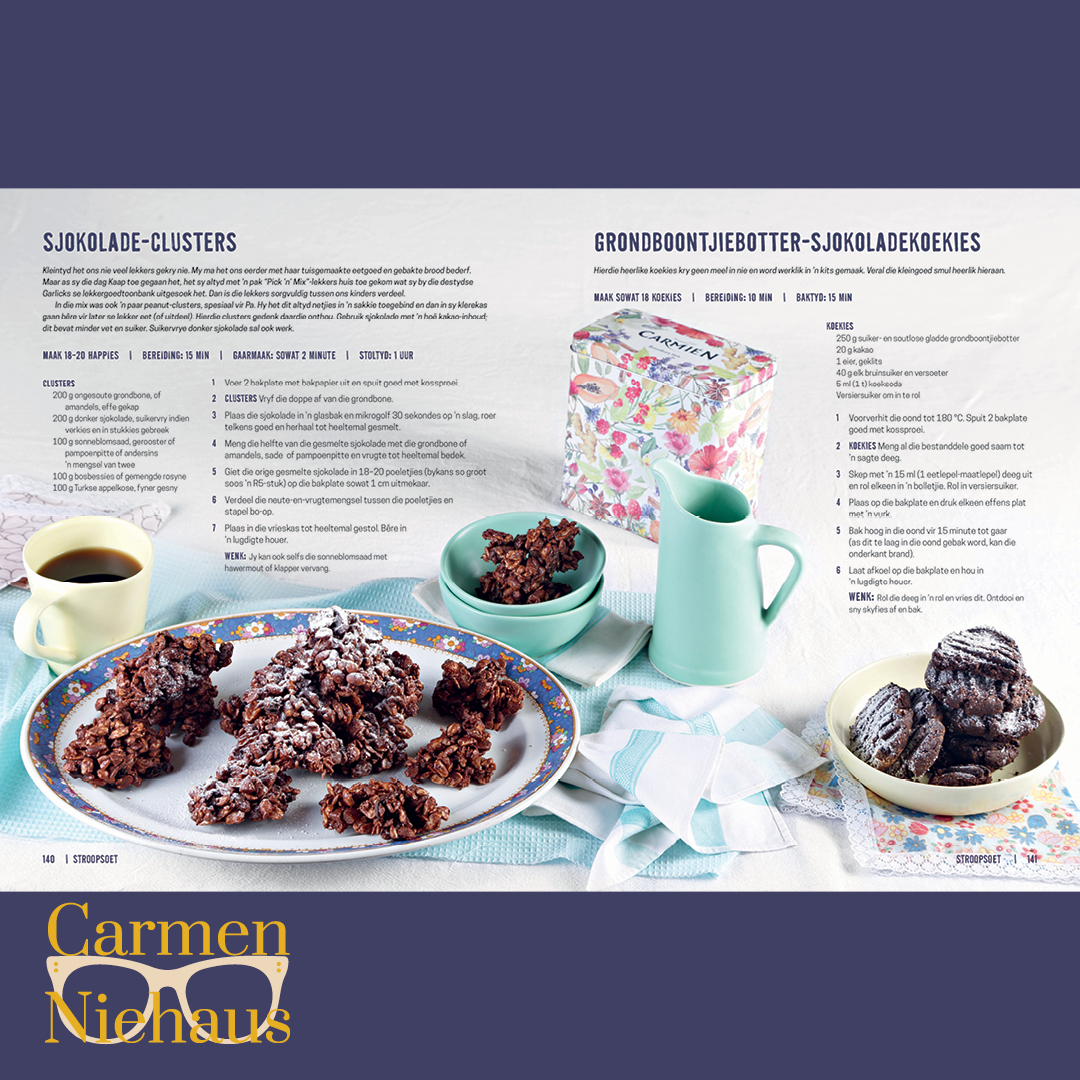 Met meeste van my boeke was dit nog altyd die geval – net nadat ons besluit het wat die titel, oftewel in daardie stadium die werkstitel, van die boek gaan wees, dink ek eerstens volgende daaraan van hoe die boek moet lyk. Veral die foto’s – waar en hoe hulle geplaas moet wees, is dit volblad of kom die teks op die foto asook wat die look & feel daarvan moet wees. Want dis nie net lekker resepte in ‘n resepteboek wat mense se oog vang nie, die foto’s moet ook met die leser praat.