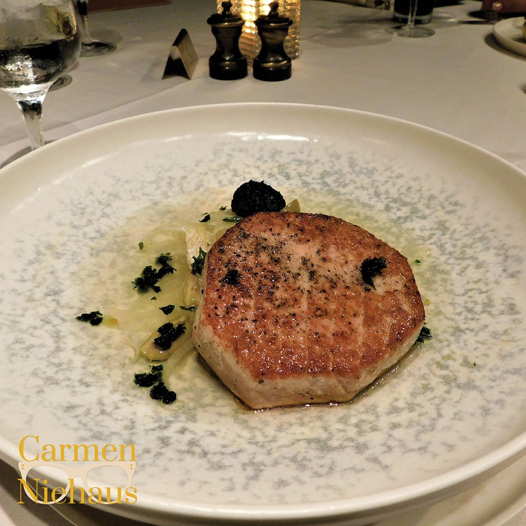 Vis en seekos is daar in alle gedaantes op die skip: van gebraaide garnale, gebraaide vis en tjips, paella en tunasteaks tot ‘n spesiale verrassing van kreefstert-thermidor wat ons een aand in ons kajuit geniet.