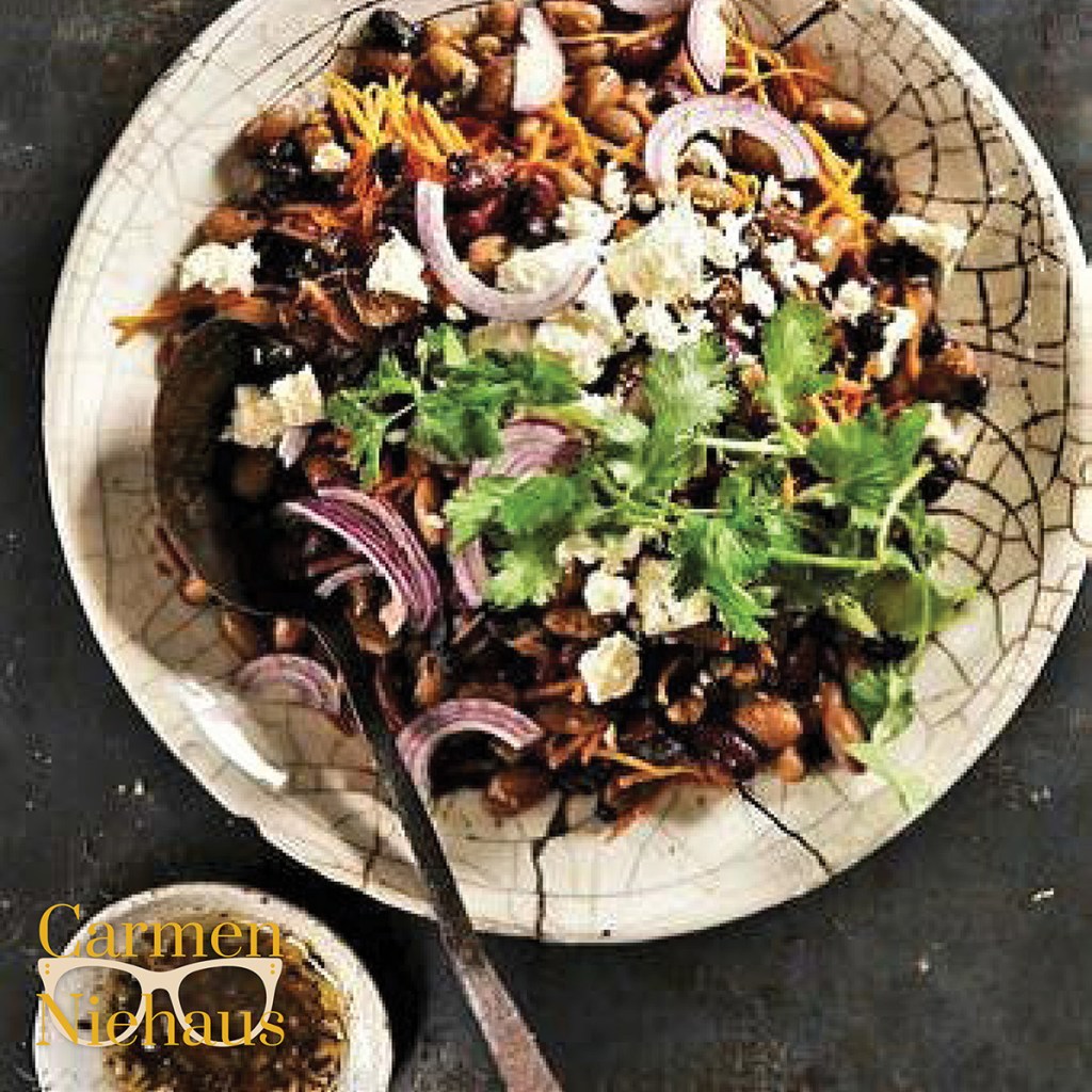 Hierdie slaai herinner aan destyds se gewilde drieboneslaai, maar dis heelwat gesonder met ‘n heerlike geurige slaaisous. Baie keer, as ek die tyd my inhaal, maak ek sommer ‘n slaaisous met rooibostee—dan gebruik ek Carmién se groen rooibostee met boegoe. Maklik en heerlik!