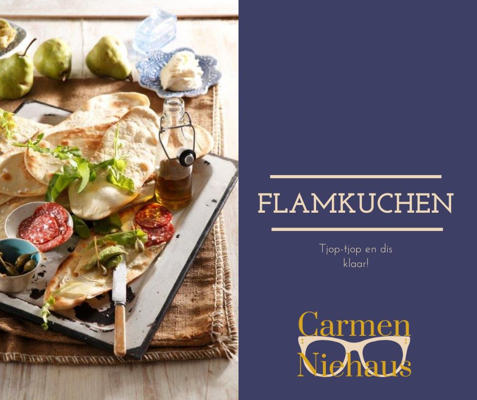 Hierdie is een van my absolute staatmakerresepte. My maklike weergawe van flamkuchen met die mees basiese bestanddele denkbaar: meel, olyfolie en yswater! En jy maak dit sommer in die voedselverwerker aan. Tjop-tjop en dis klaar. Dis ideaal om vir ‘n peuselbord voor te sit. Bak platbrode en pak uit saam met rotisserie-hoender, blaarslaai, rou groentes, kase, piekels en smere. Ook lekker om te gebruik as ‘n vinnige basis vir pizza.