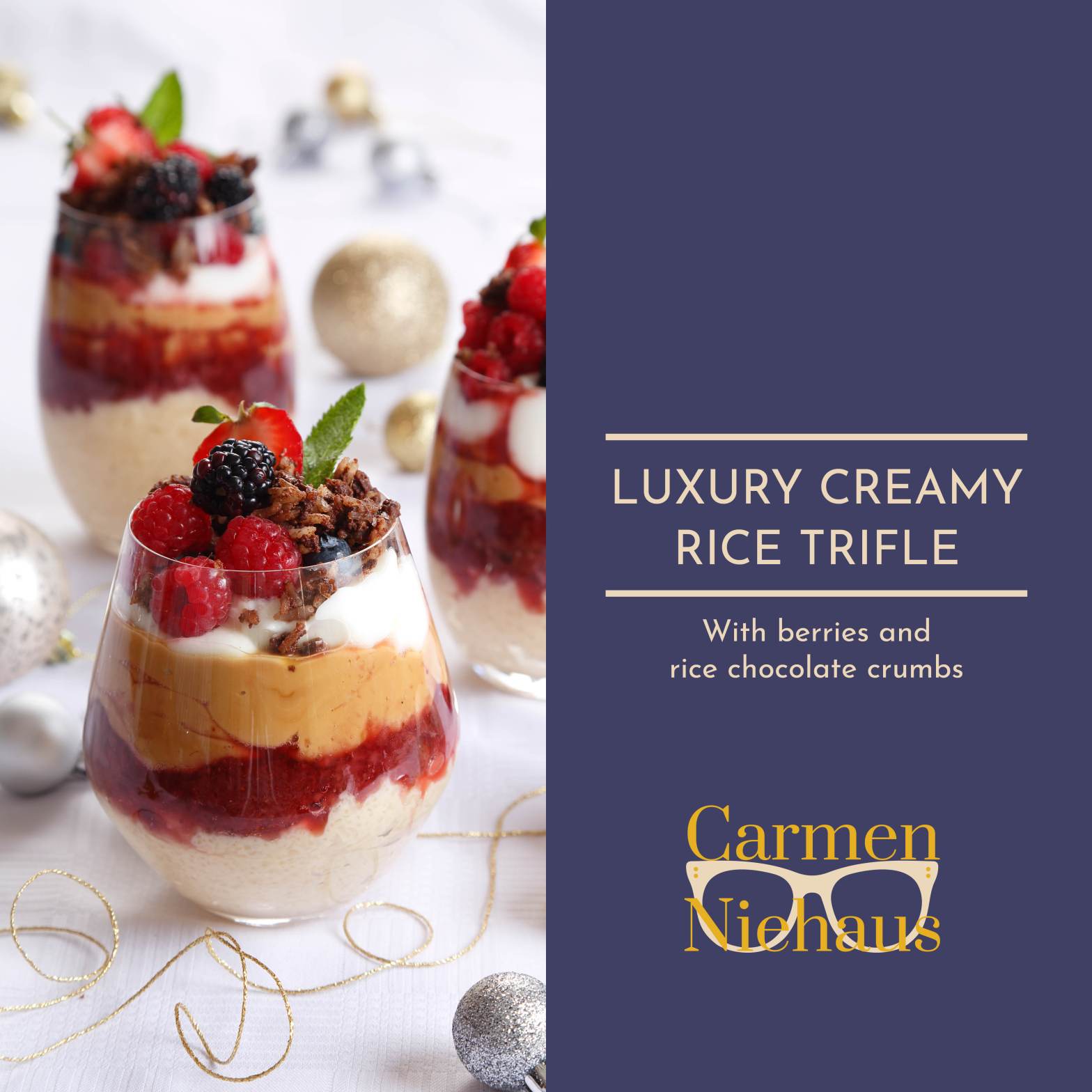 Since my childhood days, trifle is part of our family Christmas feasts. Every year the bowl needs to be bigger as it is finished to the bottom every time. Nowadays I made individual ones so that everyone can enjoy his own bit of specialness. This rice trifle is a combination of my most favourite flavours: creamy rice with a hint of rose water, creamy yoghurt, caramel condensed milk, and berries.