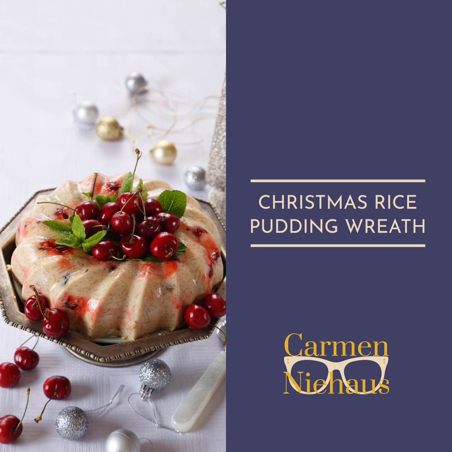 During my childhood days every year, Christmas was a big family get together on the farm; over fifty of us had a feast under the trees in our garden or on the large stoep on the original family farm. There were leg of lamb and my auntie Martie’s famous chicken pie with lots of salads on the side; my mom made steamed Christmas pudding in which a few coins were also hidden. This wreath is a resemblance of that pudding with the same flavour profile full of spiciness. But it is the silky creaminess of this rice pudding that makes it extra special.