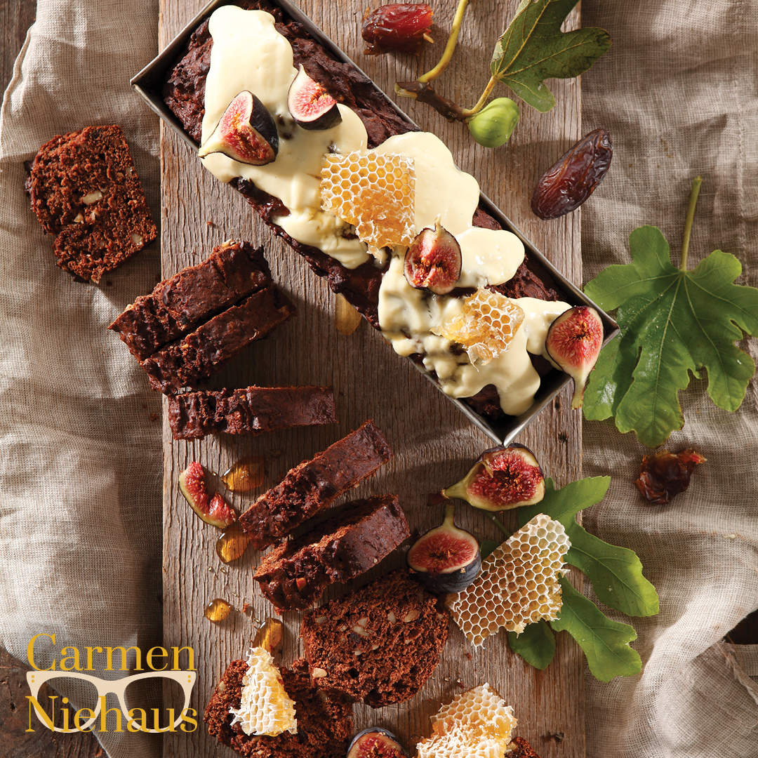 Koek, sjokolade, bessies en vye is sinoniem met die liefde. In hierdie doodmaklike sjokoladekoek kry jy alles in een met op die koop toe karamelkondensmelk – iets waarmee jy my altyd sal omkoop!