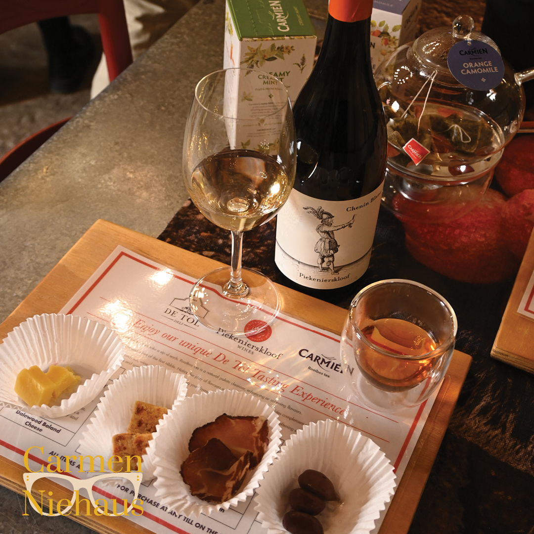 Proe en ervaar hoe interresant die wêreld van happies kos saam met ‘n sippie wyn en rooibostee kan wees en hoe wyn en tee telkens ander geure en teksture in kos na vore bring.